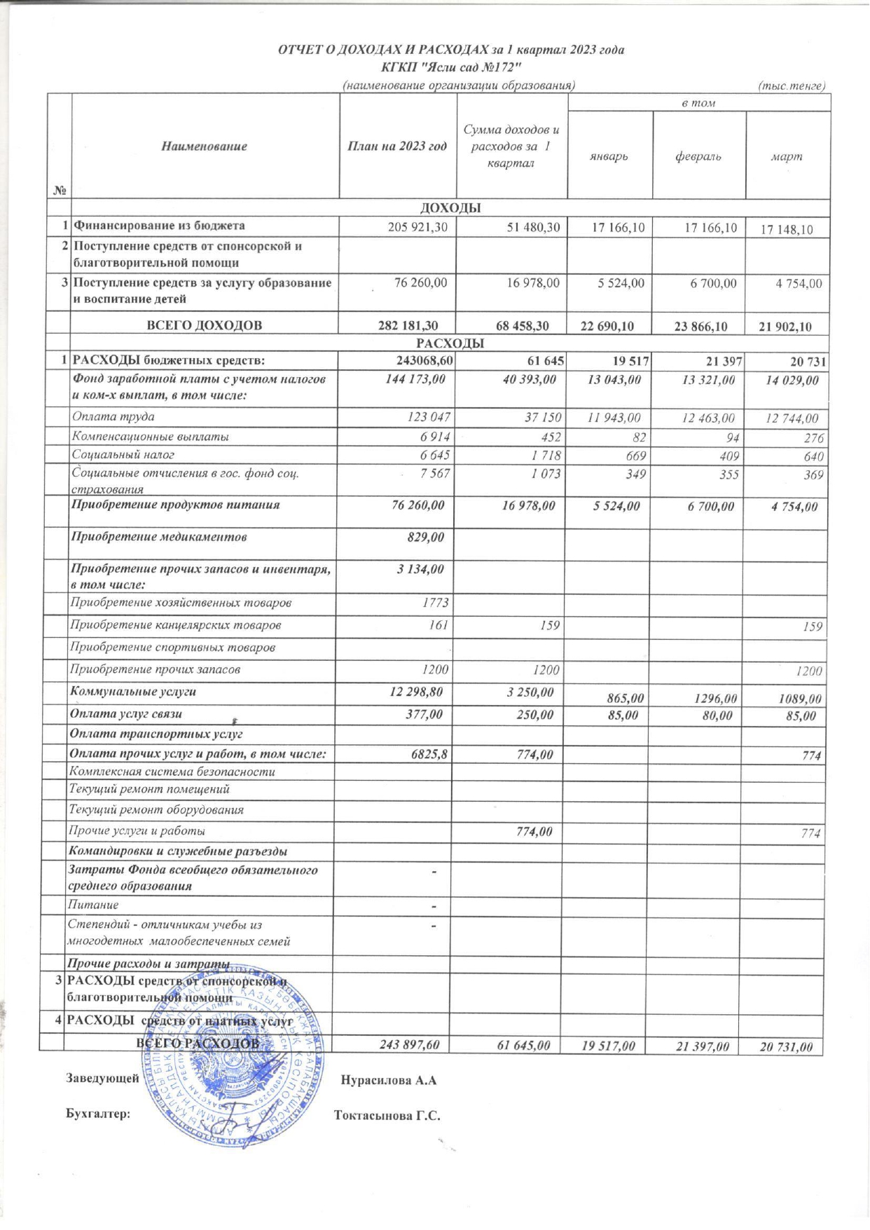 Кіріс шығыс есебі 1 квартал » ГККП "Ясли сад №172"
