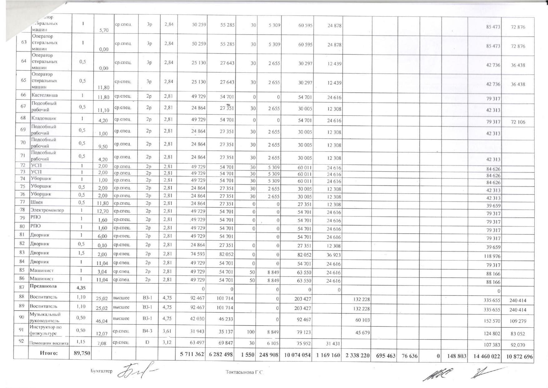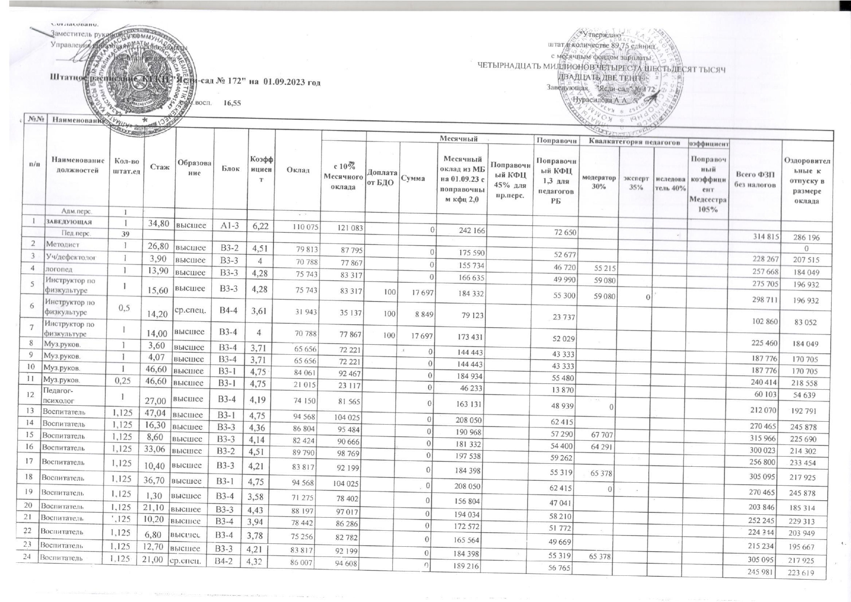 Штатное расписания 2023г » ГККП "Ясли сад №172"